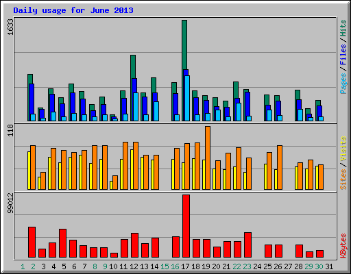 | Day | Hits | Files | Pages | Visits | Sites | KBytes | ||||||